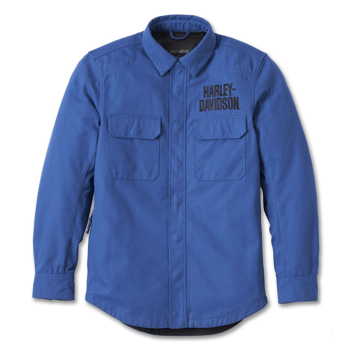 Style meets function with a few upgrades on our latest Limited Edition Operative Riding Shirt Jacket. Made from heavyweight cotton/poly twill for abrasion resistance in a classic silhouette, it now has less mesh lining for a more comfortable fit and a side storage pocket with a secure zip closure. It also now includes superior breathability and impact protection with our D3O Ghost Armor at the elbows and shoulders (see specs for more details and back armor purchase options). It still features functional touches like underarm vents, pre-curved sleeves, reflective collar piping for added visibility, and a hidden snap-down collar that stays put while you ride. The True Blue color is a perfect backdrop for the hit of our namesake embroidered on front. If you like it, don't delay�this seasonal riding layer is selling fast.